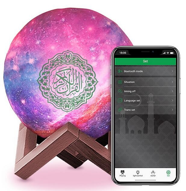 It is a lamp with full recitation of The Noble Quran,using remote control to select Quranic audio and listen to the Quran with high-quality voice.